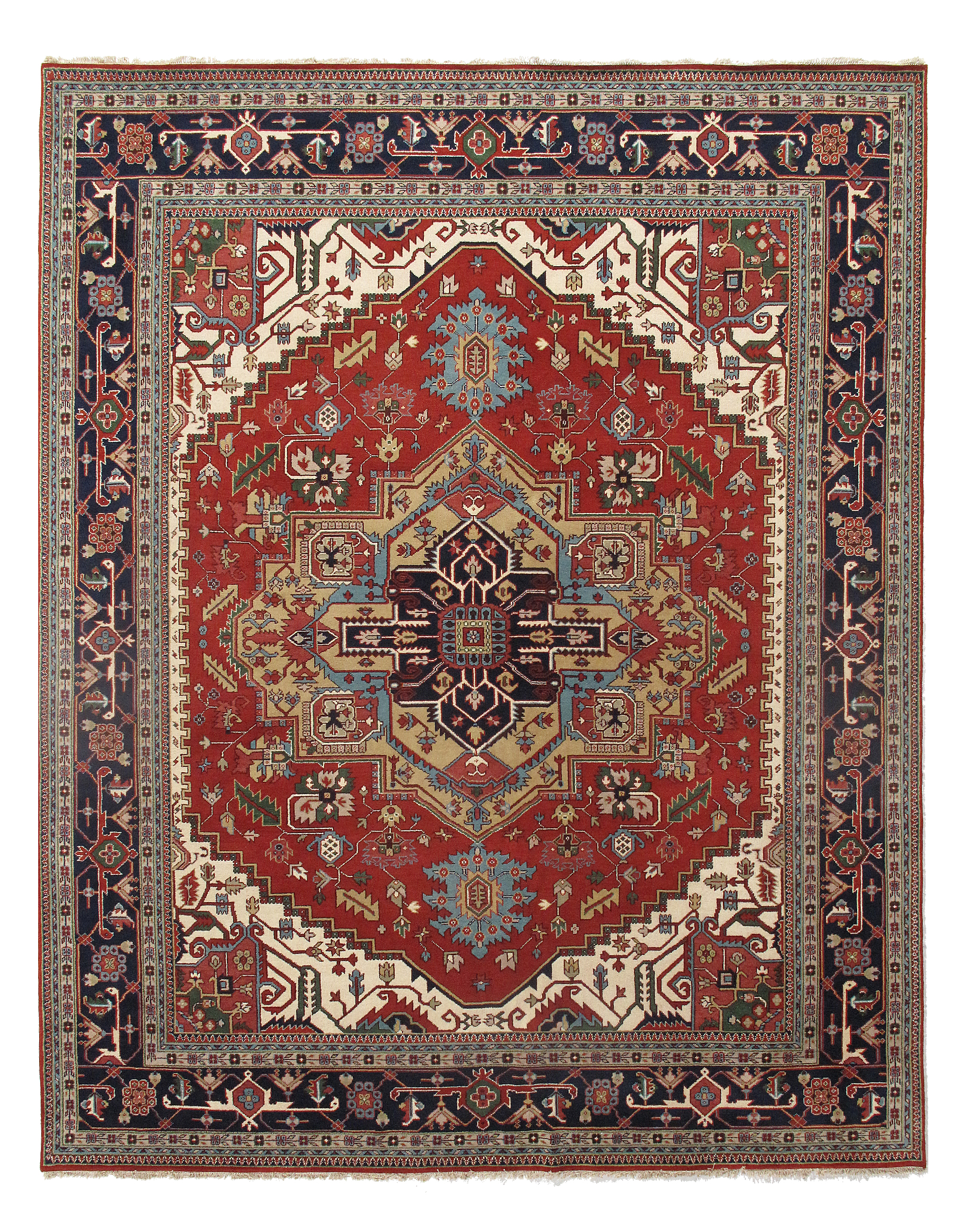 Serapi design rug. Handmade and hand-knotted in fine lambswool on a cotton foundation. Vegetable dyed hand-spun wool rug.