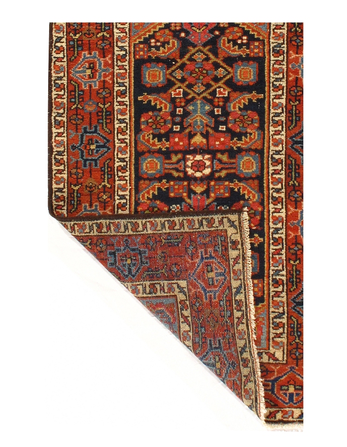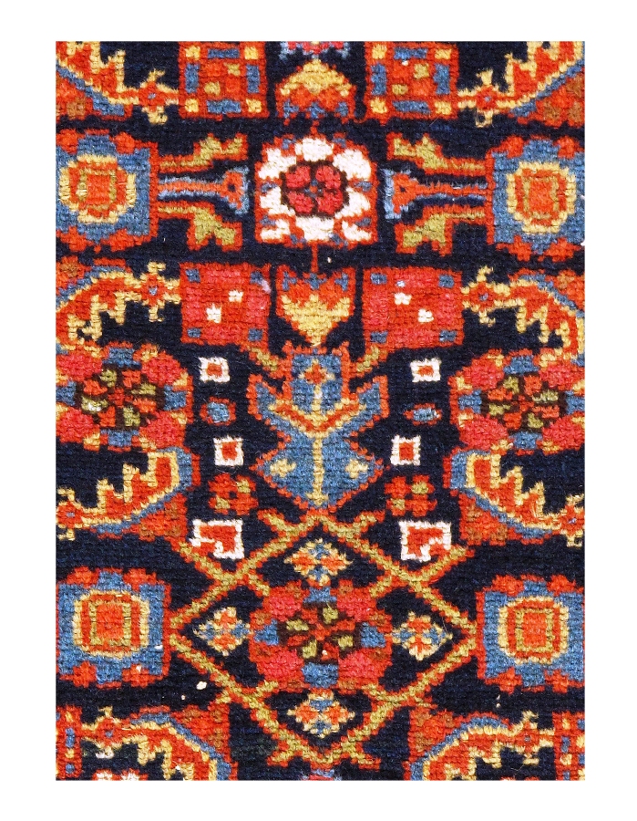 Original Persian Karajeh antique rug. The piece is made of hand-spun lamb's wool on a cotton foundation, and it was vegetable dyed. The rug has a dense, soft pile, and excellent quality, to ensure that you will enjoy it for years to come. Circa 1940