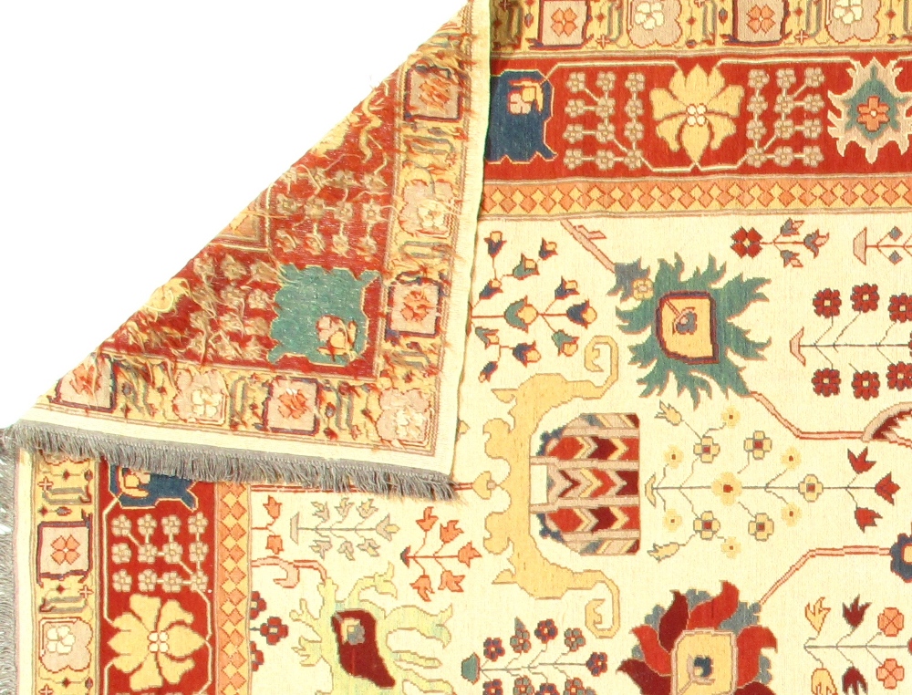 Employing an historic technique older even than traditional piled carpet weaving, Soumak weavers create flat-weave rugs that fall somewhere between traditional Kilims and knotted pile carpets. They work by wrapping each weft over four warps, then pulling the wefts back through first two warps, on and on in a repeated pattern until pieces as large as full-sized carpets are complete. It's a labor-intensive process, usually performed by an individual weaver, but the resultant Soumaks are stronger than their most closely related tribal form, the Kilim. They are somewhat less durable than piled Oriental carpets, but Soumak rugs are exceptionally finely woven, made in the utilitarian tribal tradition for daily use.