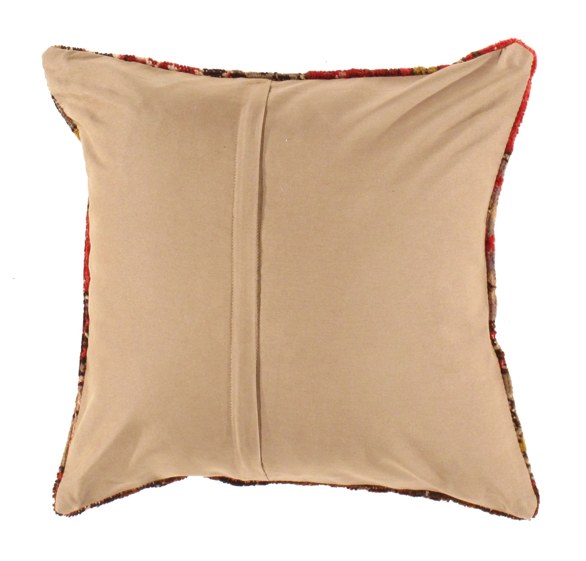 This pillow features a hidden zipper closure with neutral fabric backing.