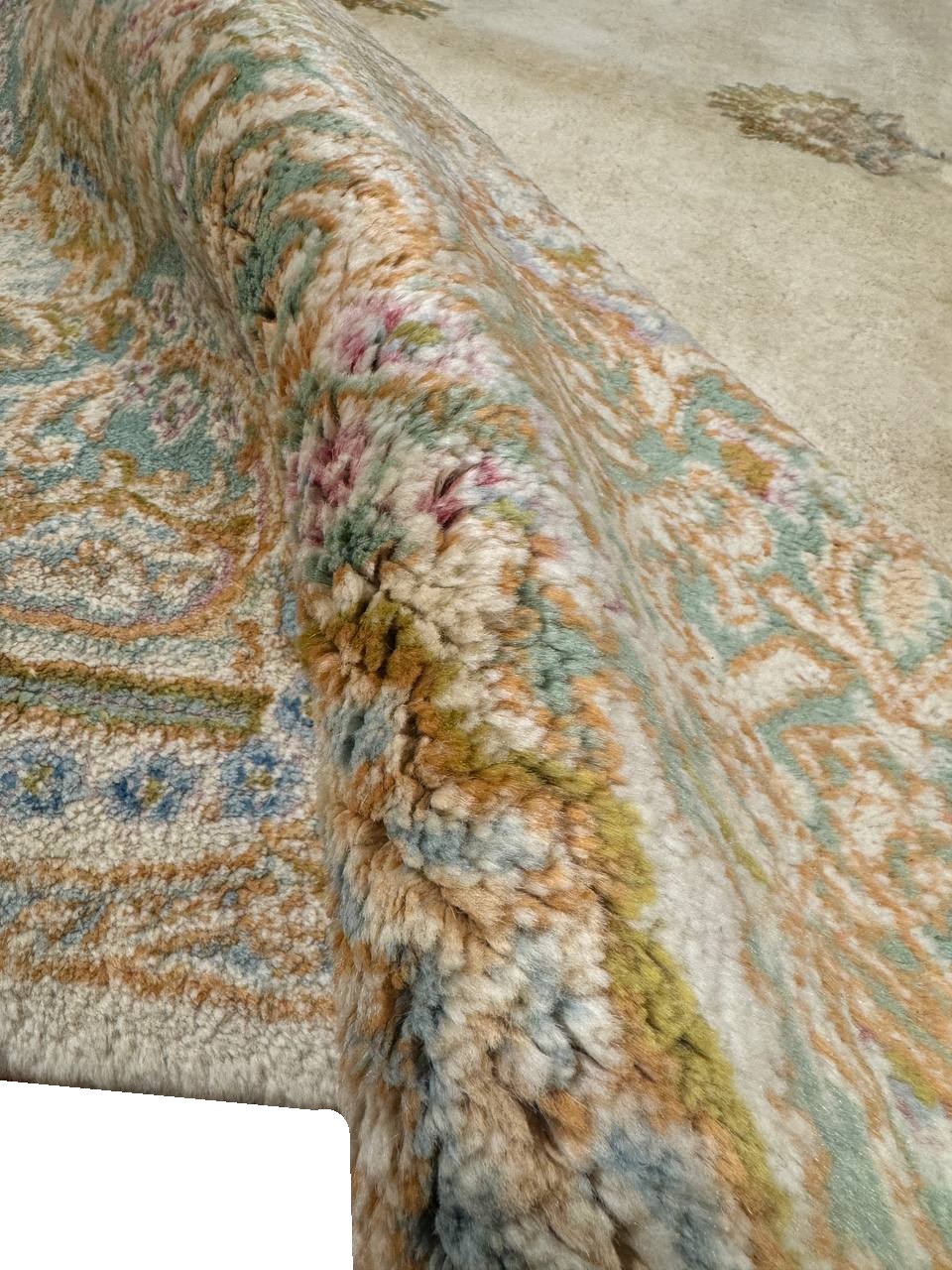 Kerman is an ancient city, with an incredible history going back over a thousand years. Marco Polo was one of the first westerners to view Kerman rugs. The city is located in the central south-eastern section of Iran, in the province that bears its name. Kerman rugs and carpets are perhaps one of the most recognizable within the antique Persian rug category. A typical pattern for Kerman rugs and carpets is a floral or architectural theme in the main border with a central medallion in the field. Other patterns include the finer Kerman Lavar style with garden, tree-of-life, vase, and all-over mille fleur designs, or the many pictorials which tell the story of a significant figure or event in history. The vase design carpets originated during the Safavieh dynasty, and are among the greatest masterpieces of Persian weaving.