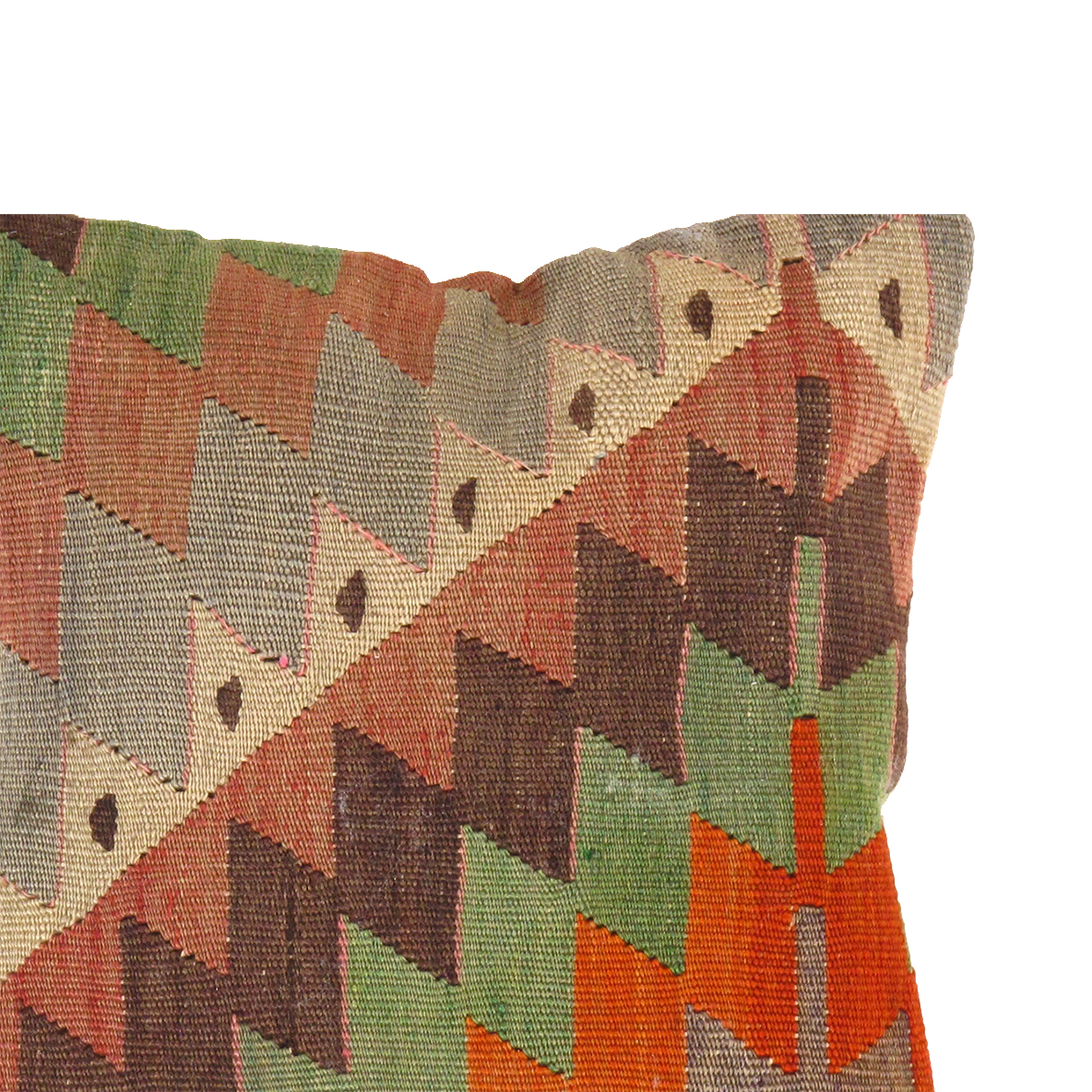 Offered is an antique handwoven Turkish Oushak pillow. This is 100% wool. Back 100% cotton. Beautiful colors and well made. This pillow features a hidden zipper closure with neutral fabric backing.