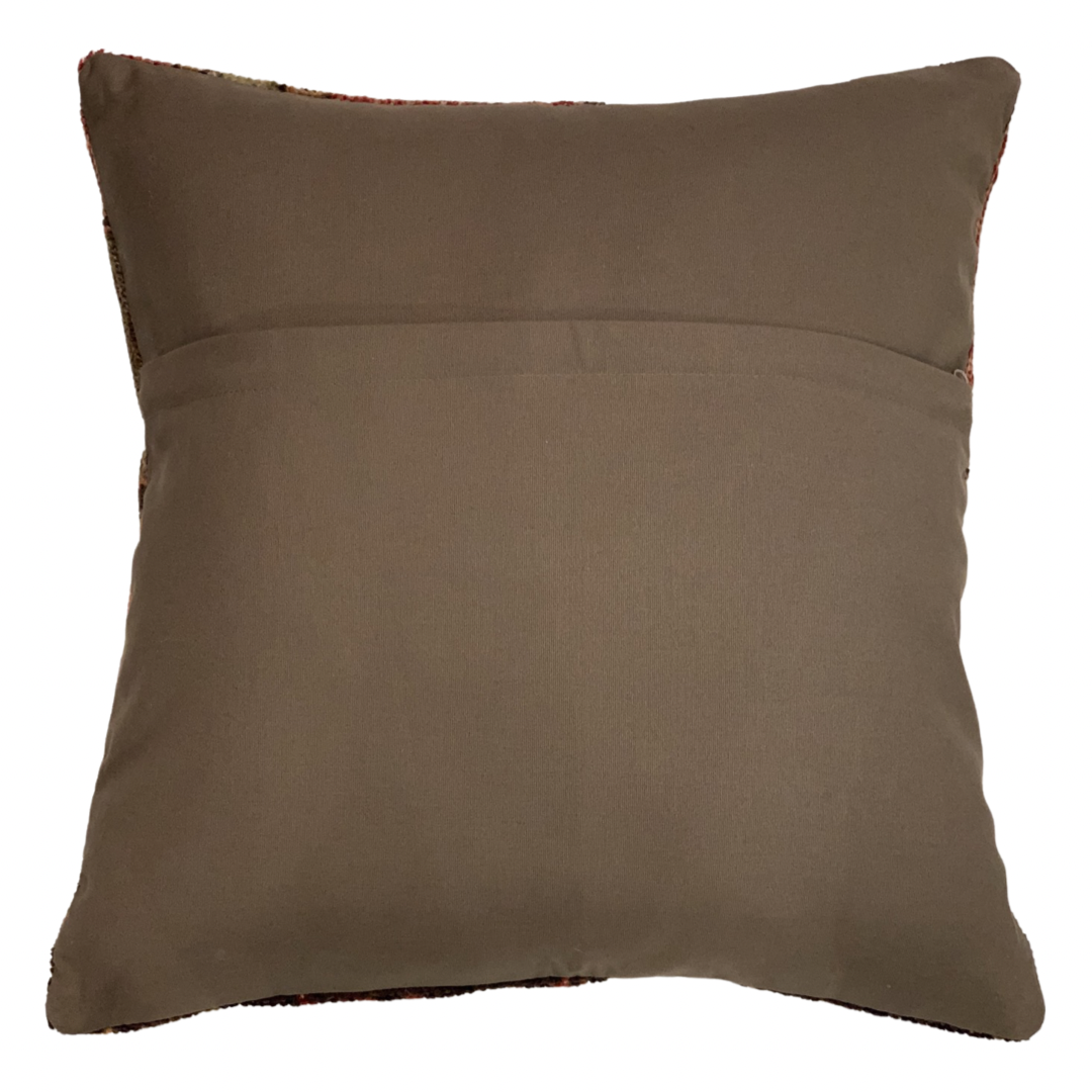 Antique hand woven Oushak pillow. This is 100% wool. Back 100% cotton. Beautiful colors and well made. This pillow features a hidden zipper closure with neutral fabric backing.