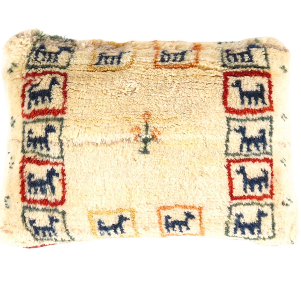 This Gabbeh pillow is made of high-quality LAMBS WOOL The piece was crafted with good workmanship.