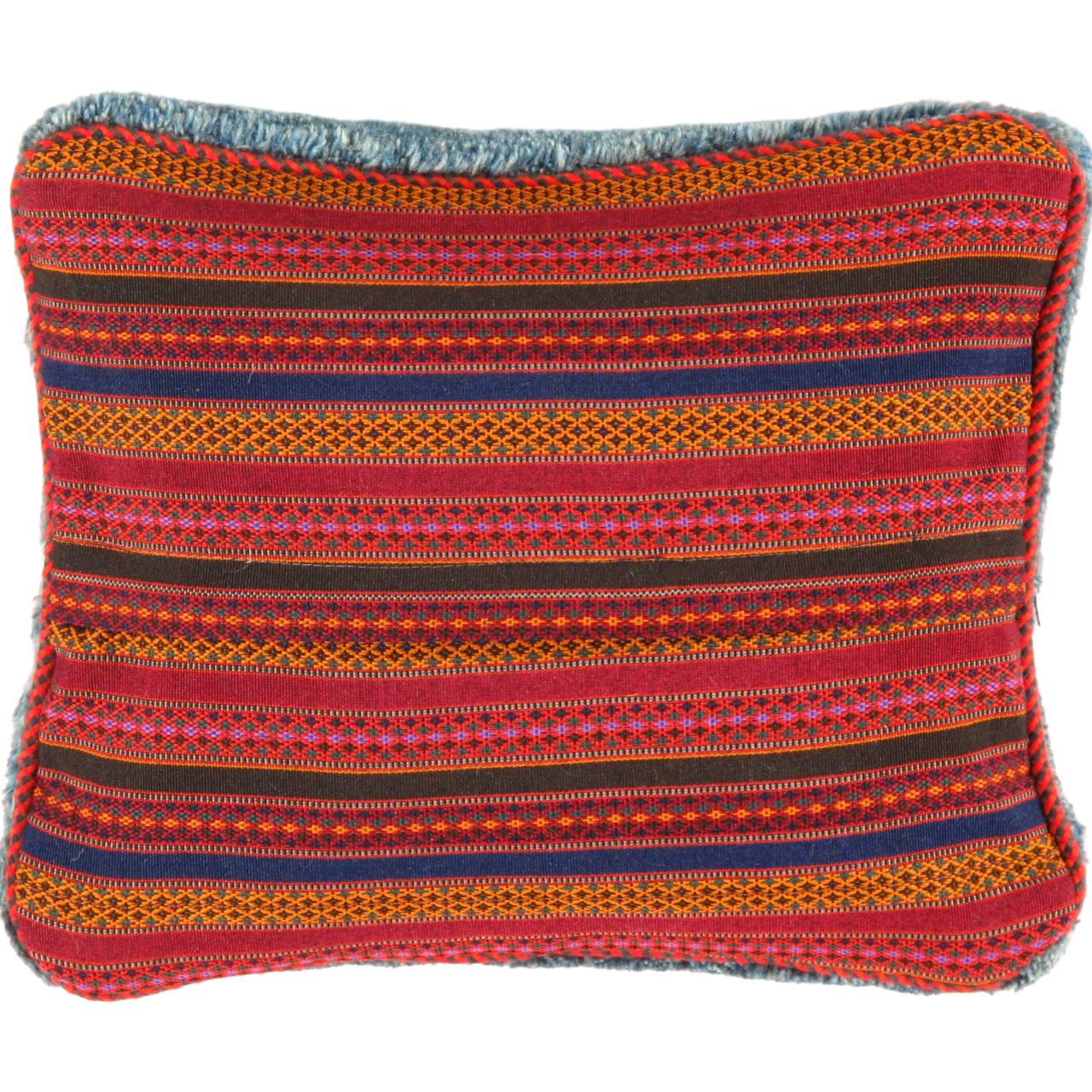 The word “Gabbeh” literally translates to “in the rough,” and it is an accurate description of this style of Persian rug. Gabbeh carpets are woven on makeshift ground looms constructed both of materials that are kept and hauled for long distances by the nomadic tribel, and also of materials that are found at each site where the tribe sets up camp. Due to the fact that part of the loom must be found at each site, a wide variety is introduced. Thus, these rugs are usually somewhat irregular in shape. But, for what they lack in perfectly uniform shape they more than make up for in character, durability and uniqueness.This Gabbeh pillow is made of high-quality LAMBS WOOL The piece was crafted with good workmanship