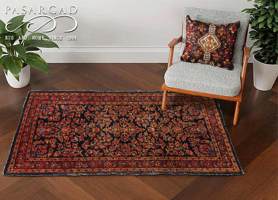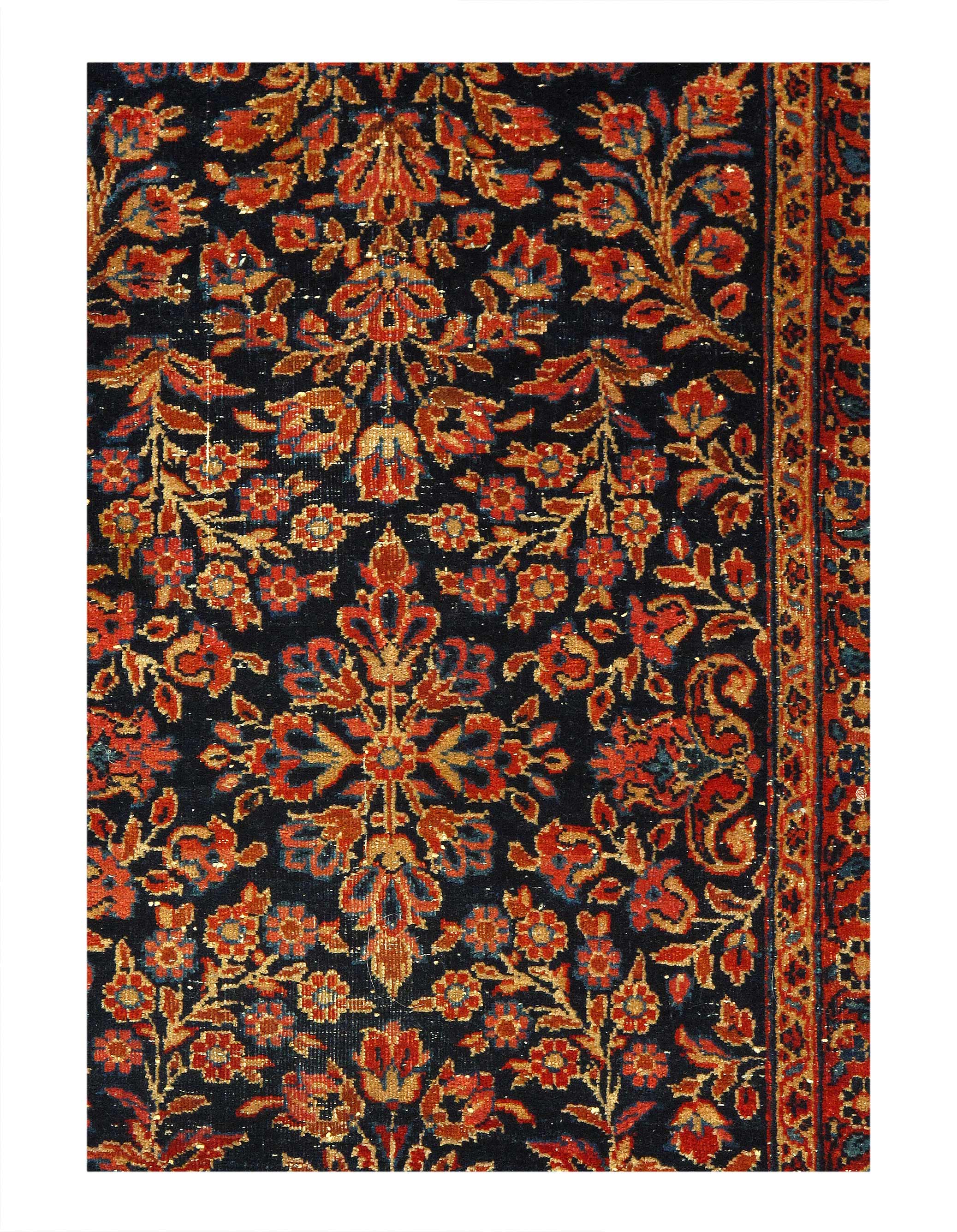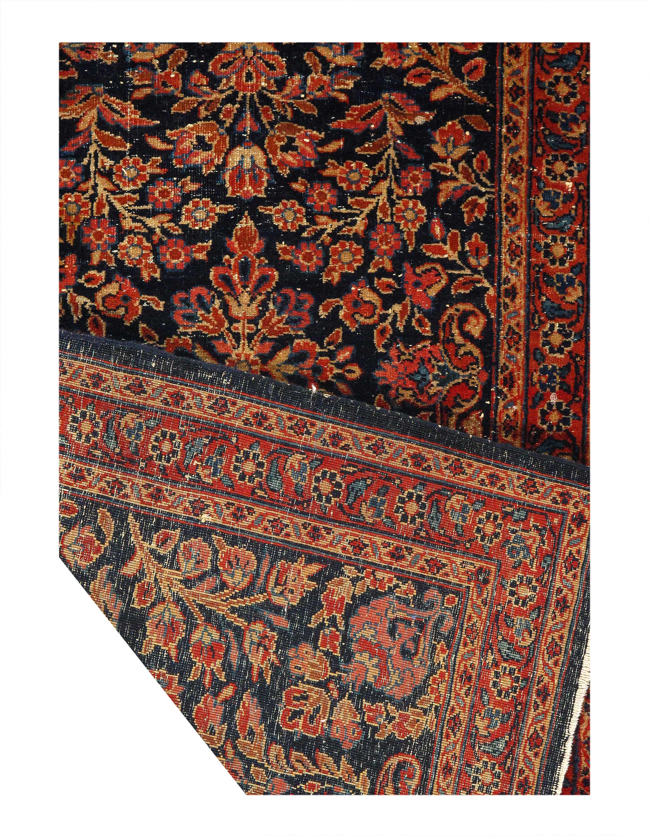 Antique Persian Sarouk rug. These vintage rugs bring traditional sophistication to your home. These rugs feature 100% premium lamb's wool pile hand-knotted into elegant designs, perfect for your elegant decor. Circa 1920.