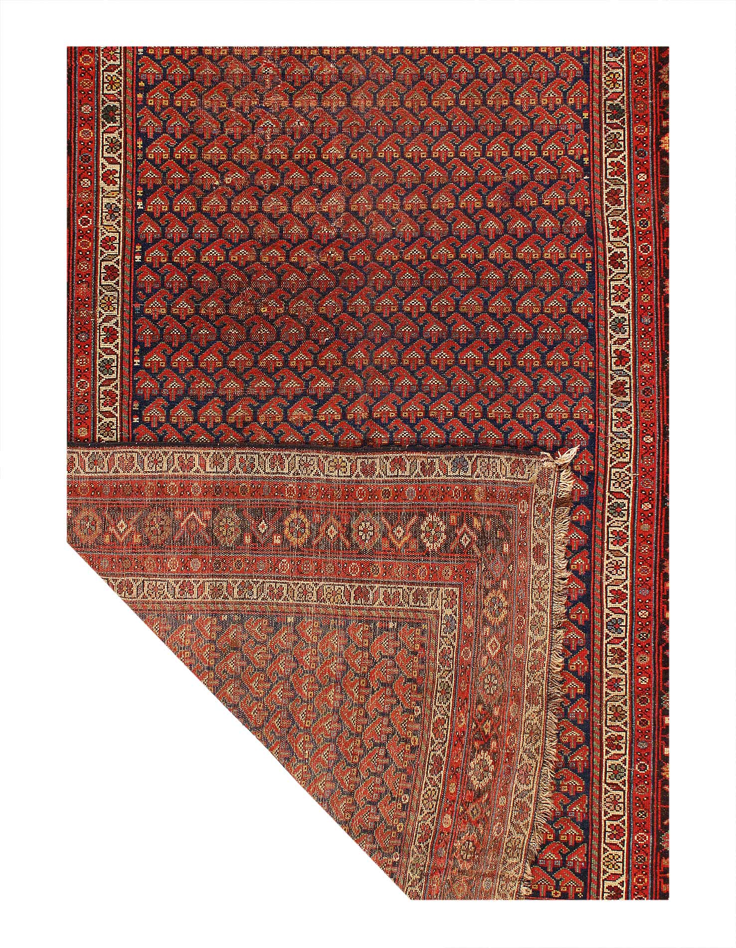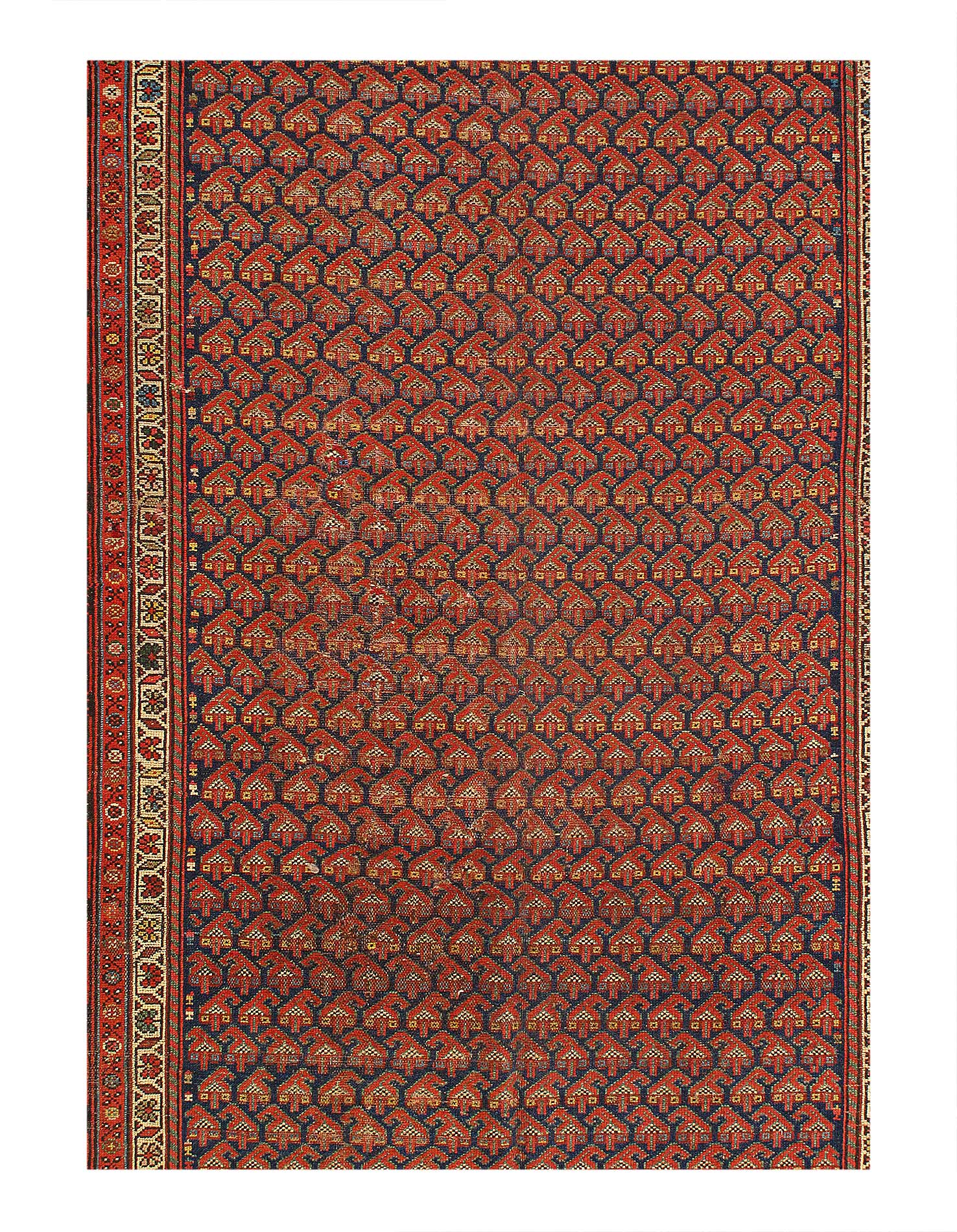 Hand knotted in a village around Hamadan, western Iran. Hamadan rugs can originate from any one of hundreds of villages across the vast region. While materials used can vary from one village to another, one uniting characteristic of this area is that virtually all Hamadan rugs are single-wefted, unlike most tribal rugs which are double-wefted. This particular Persian antique rug is in excellent condition and has superb quality wool that must be felt to be fully realized. As far as Hamadans go, this piece is outstanding.