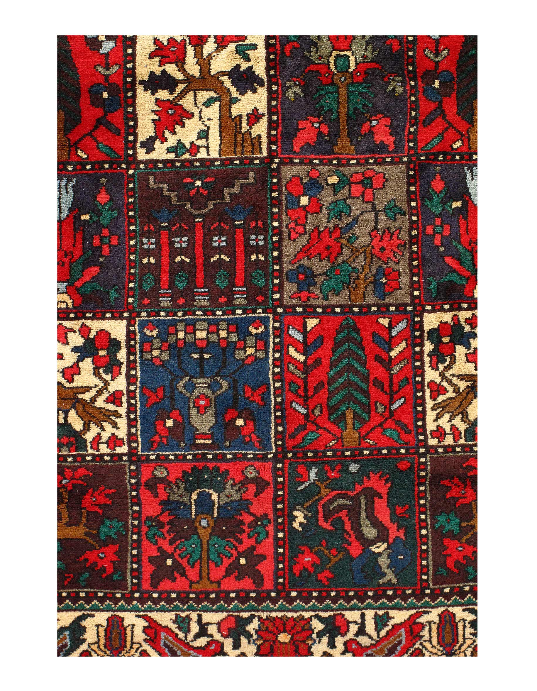 Offered is a gorgeous Persian Bakhtiari area rug. The luxurious hand-knotted pile is made from very fine lamb's wool and features a traditional Bakhtiari motif throughout. Handmade hand-knotted lamb's wool on a cotton foundation.